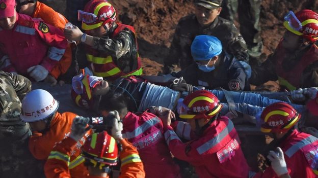 The landslide happened when a huge man-made mound of earth and construction waste collapsed after heavy rains.